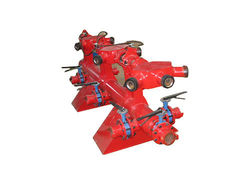 壓井管匯是油氣井壓力控制設(shè)備中的一個(gè)重要組成部分。它的作用是:當(dāng)不能通過(guò)鉆柱正常循環(huán)時(shí),可通過(guò)壓井管匯向井中泵入鉆井液,達(dá)到控制井壓的目的。壓井管匯的一端與鉆井四通側(cè)孔相連,一端和鉆井泥漿泵相連。